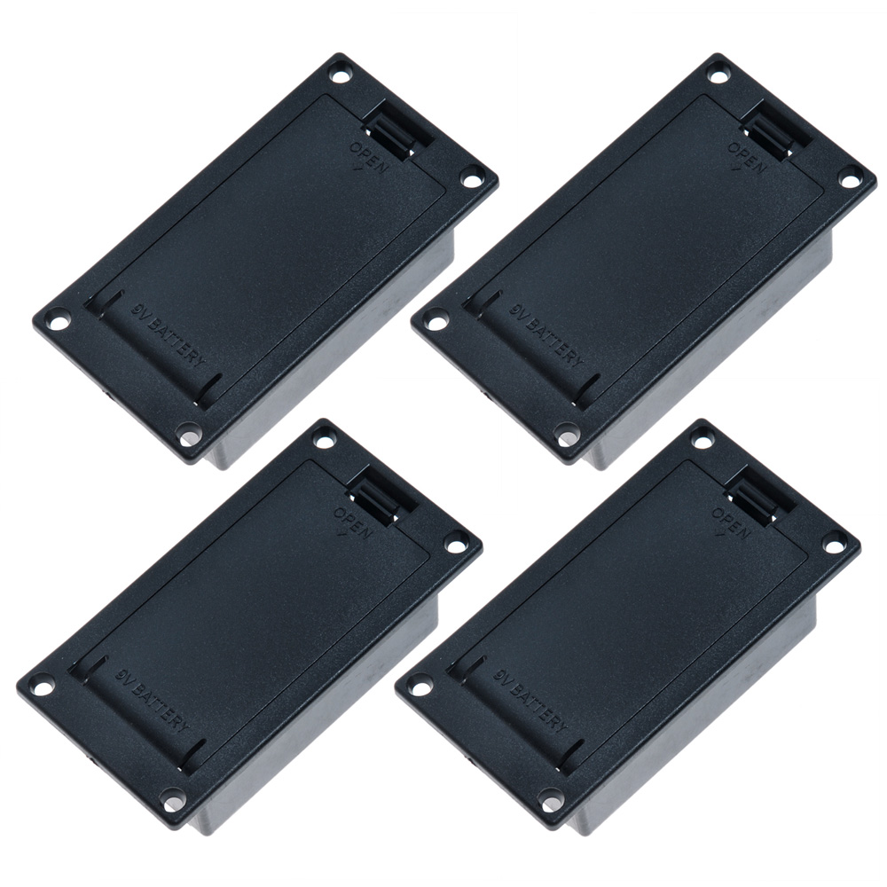 Item 100% like the picture shown Flat mounting for active pickup guitar&bass Easy access for replacement. Dimension: Surface: 72.6mm x 38.4mm Mounting Box:57mm (Length) x 31mm (Width)x 22mm Material: ABS Color: Black Package include: 4 pieces 9v battery case